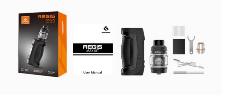 Komplet koji čine Geekvape Aegis Max baterijski mod maksimalne snage 100W i Zeus Subohm atomizer kapaciteta 5ml je namenjen zahtevnijim korisnicima, za korišćenje uvlačenjem direktno u pluća (DTL).