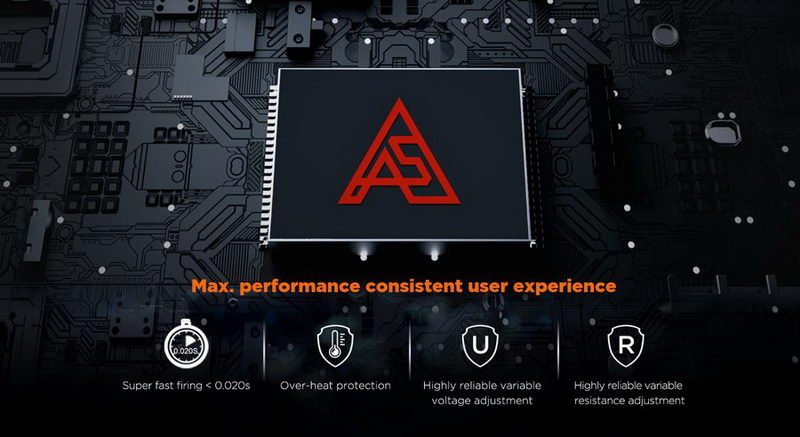 Aegis Max poseduje sve kvalitete svojih prethodika, što se prvenstveno odnosi na čuveni Geekvape AS čip koji kontroliše rad uređaja. Osnovne odlike su mu stabilnost u radu i veoma velika brzina reakcije.